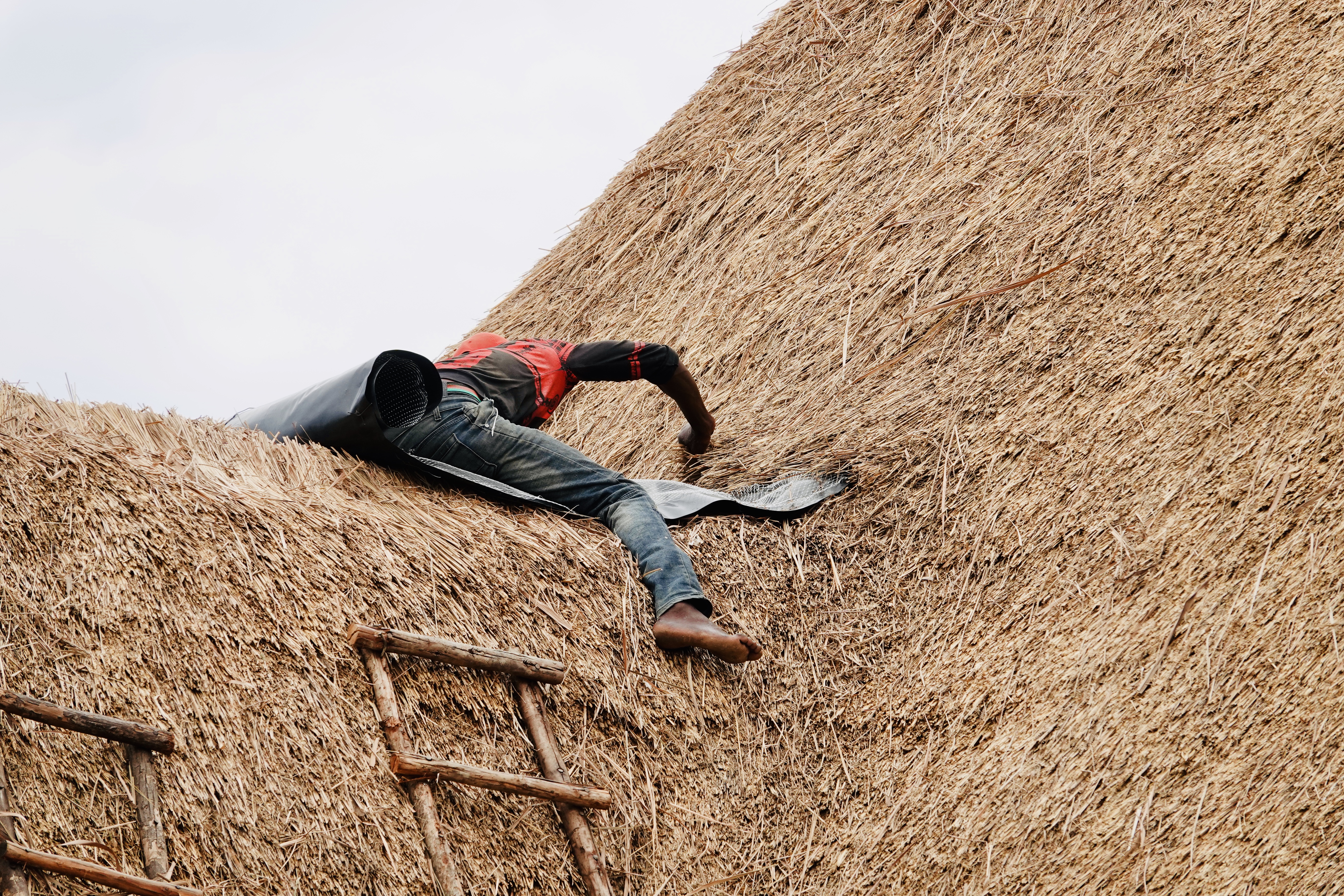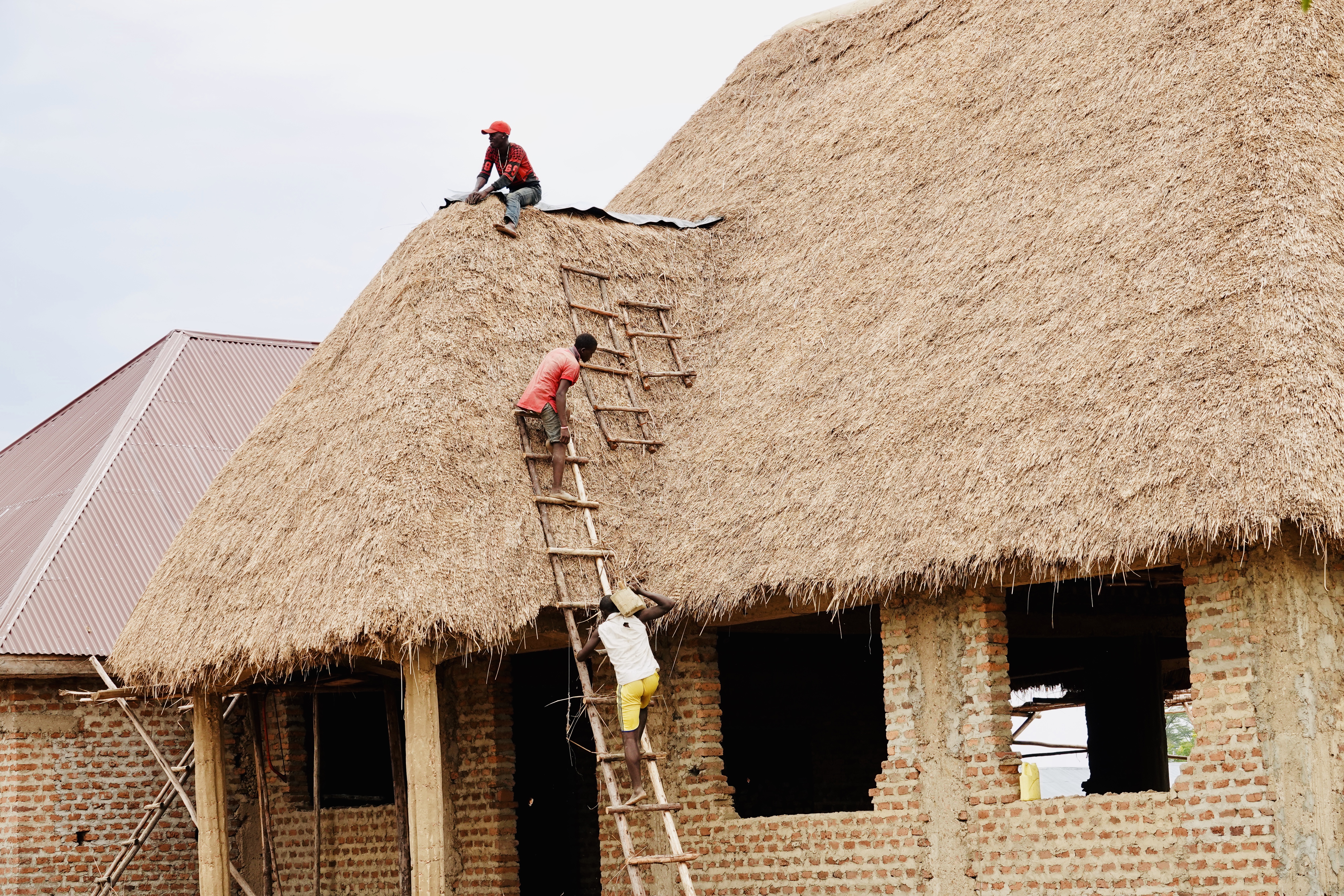 Anyway in the end the choice was easy and we decided to break the journey into two days stopping for the first night at a small village called Kisenyi on the shores of Lake Edward. This was to be just an simple overnight stop in and out but when we arrived and called in at the Community Camp we were immediately made very welcome by so many locals we knew we were in for a special stay. We arrived early in the afternoon so set up camp and while having a cold beer we watched some locals thatching a roof on what is to be a restaurant and bar of their community camp site.