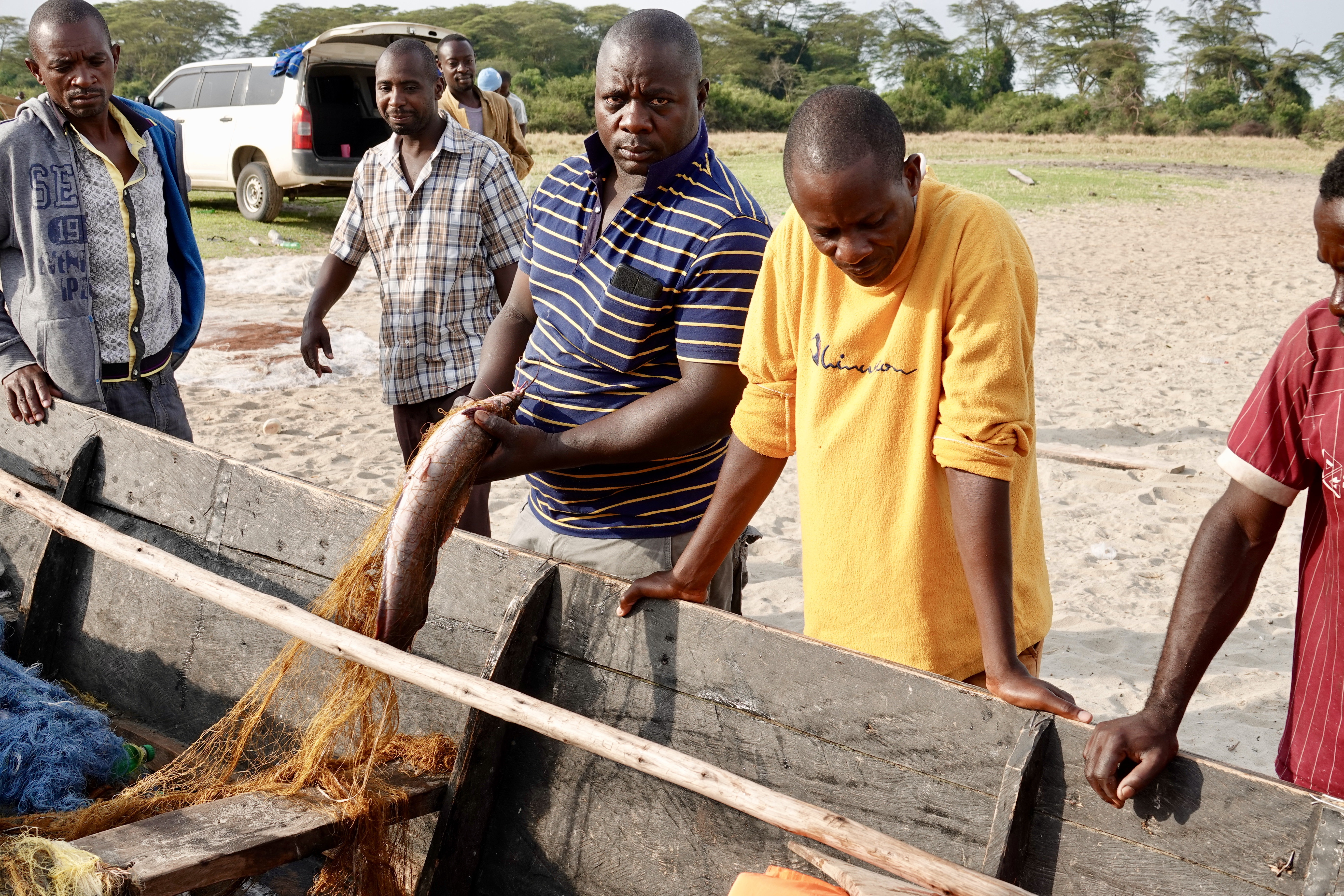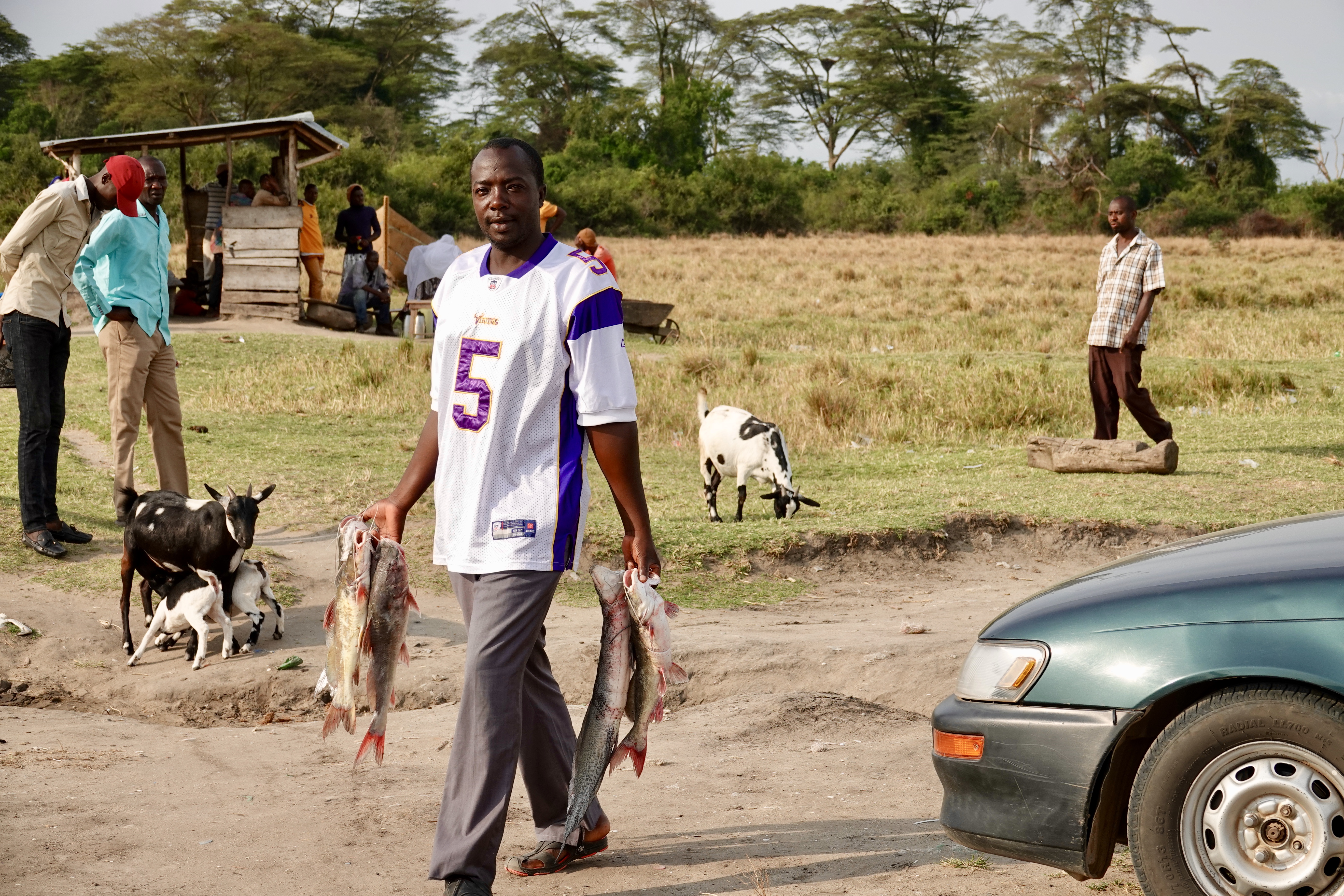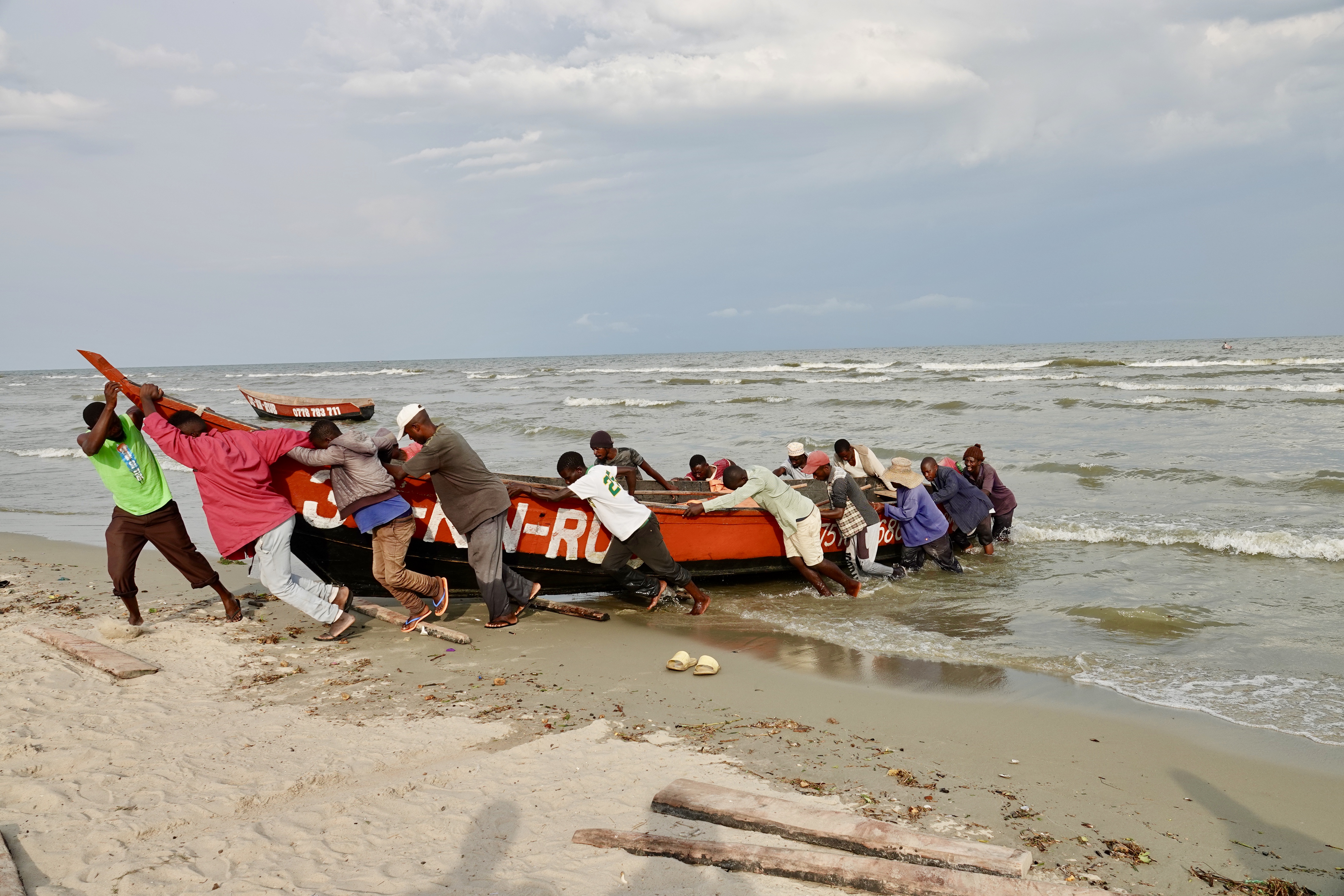 Then seeing that there was a lot of action going on down at the lake we decided to walk down and see for ourselves what was going on. Everyone was so friendly and I got talking to two men Steven and Foruk (spelling?) who told me that all the men were preparing to launch their boats to go out for a night of fishing. They leave at 3pm and go out into deep water to set their nets and then sleep in the boat until 3am when they pull the nets in and arrive back at the beach between 9am and 10 am. The government has reformed how things are done as there used to be a total of 120 small boats in this community but due to there size many men lost their lives due to rough weather that the boats were not capable of riding out and hippo attacks. So now there are only 40 larger boats licensed to fish which means that they are much safer but on the other hand many men have lost their income making the community really struggle because thatβs what they relied on.