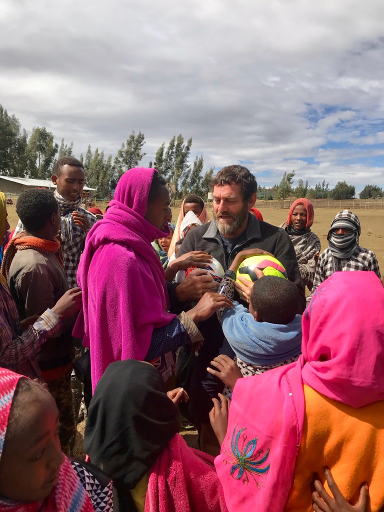 As we were traveling along, again we saw a school with lots of students outside playing so swung in to give them a couple of soccer balls however here in Ethiopia there is very little English spoken so we really struggled to be understood and it ended up being a bit of a wrestling match as the children tried to get hold of the balls!