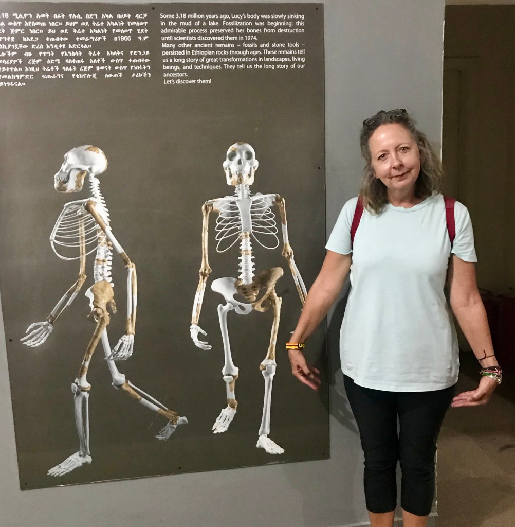 While in Addis we thought we really should visit the National Museum where Lucy or as the Ethiopians know her Dinkinesh (which means “you are marvellous “) is in residence. Lucy is a female hominid skeleton found at Hadar, about 300 kilometres north of Addis Ababa in the Awash valley. She was discovered in 1974 and is 1.1 metre tall and would have weighed around 29 kilograms and is approximately 3.2 million years old.