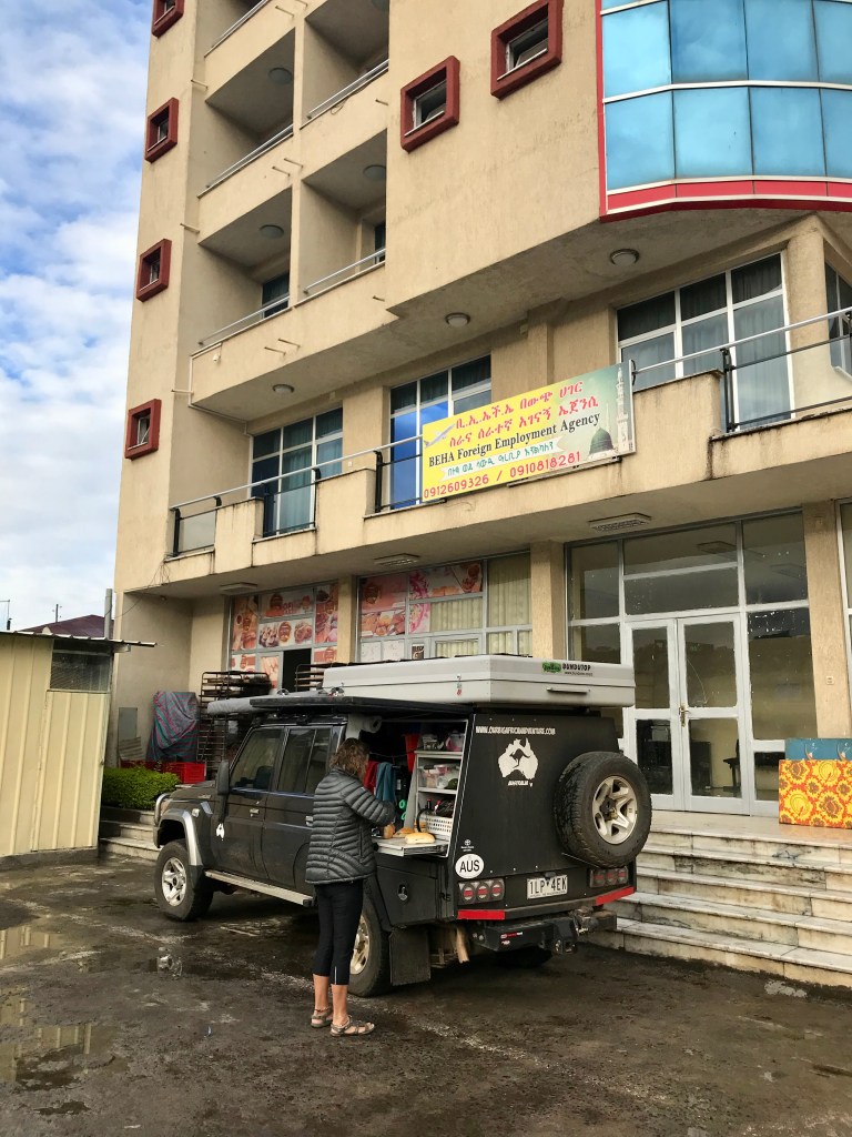 Contrary to other peoples stories we had still had no trouble and in fact found the people of Ethiopia to be very friendly and always up for a joke. We were heading for Lalibela but decided that we would overnight at a hotel in a town called Dessie, picked out from our iOverlander app and it was a real gem. A really nice clean room with a comfortable, clean bed and a hot shower for 300 birr or $15 Australian dollars! Camping is going to be very difficult in Ethiopia because there just aren’t any organised camps and wild camping is just out of the question with us but at these prices who cares!
