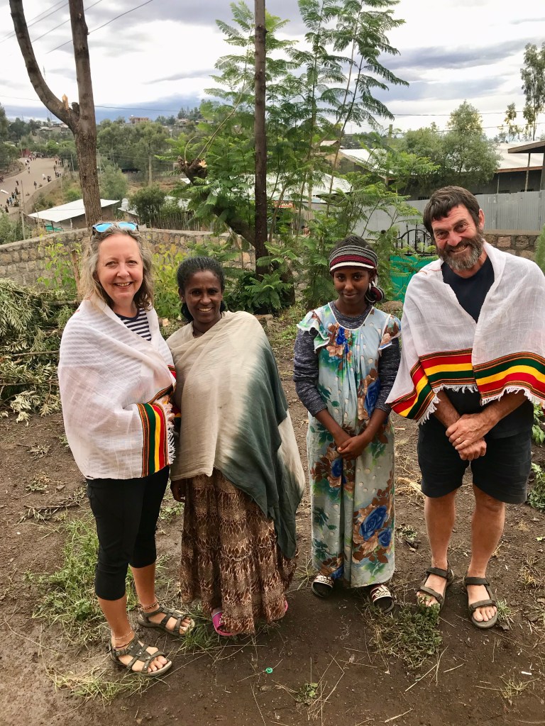 The last 30 kilometre climb up to Lalibela is quite a steep climb and the views were awesome. Lalibela is a high place of Ethiopian Christianity, still today a place of pilmigrage and devotion.Back in Addis we met a young man Fassil in the National Museum and we got talking only to find out that he was from Lalibela but was in Addis at University. He asked us if we would please go and see his family when in Lalibela to which we said of course we would. He also told me that he could set us up with a guide to take us around the 12 rock-hewn churches in Lalibela so we took down his details. As we drove into Lalibela we were recognised by Mamush so he waved us down, we had a chat and instantly felt he was the right man for the job. After we found our accommodation Mamush took us by Tuk Tuk around to see Fassil’s Mum and sister who were just lovely and we could tell they were both so proud of and missed Fassil very much. His mum made us some great coffee and we snacked on roasted wheat cornels while Mamush did some translating for all of us.