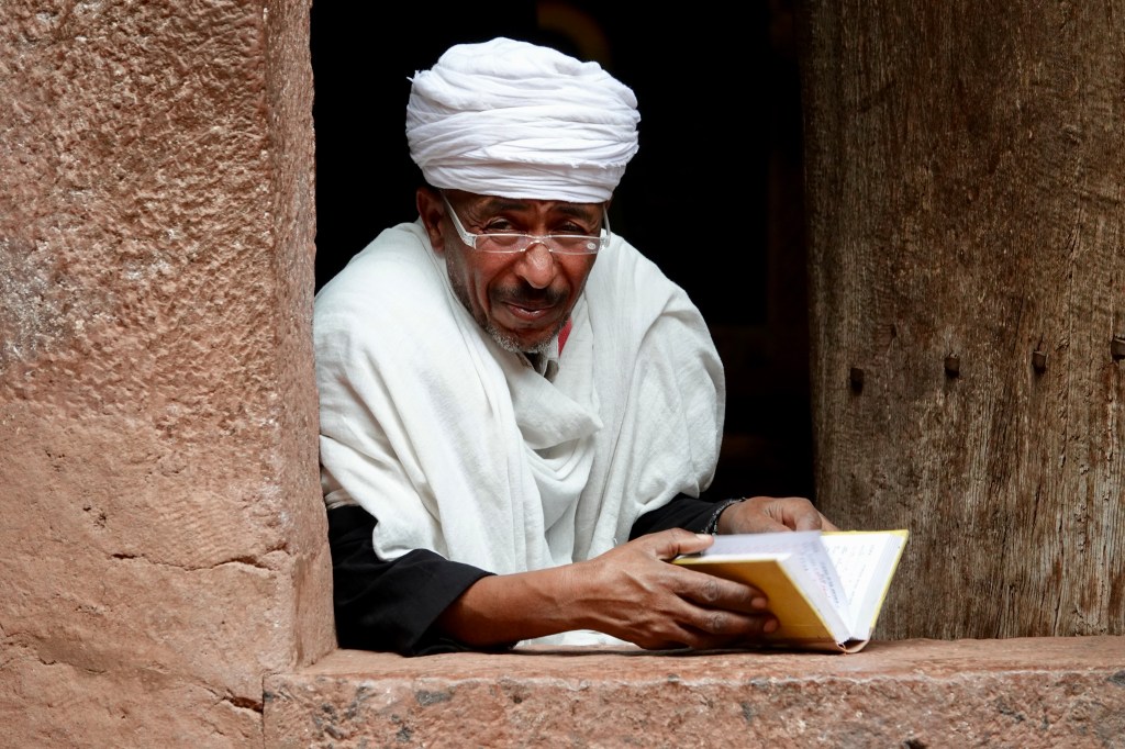 All of the churches close between 12 noon and 2 pm and we had lunch in a hotel followed by a couple of the delightful Ethiopian coffees. After lunch we finished off what churches we hadn’t seen and then Mamush took us up to a vantage point where you can see all of the churches from above which was spectacular. At one stage during the day we were walking between two churches when we passed a young girl and we said hello to her and we ended up in a great conversation with her. We talked about her life here in Lalibela, her family, her education, and what she did for fun. When it came to education she told us that she was trying very hard to learn English which is not taught at school in Ethiopia but to do this she needed a book which her family could not afford. We asked if this book was available in Lalibela and she said yes there was only one shop though. So we asked her to take us to this shop and we made her day by buying the book and presenting it to her.