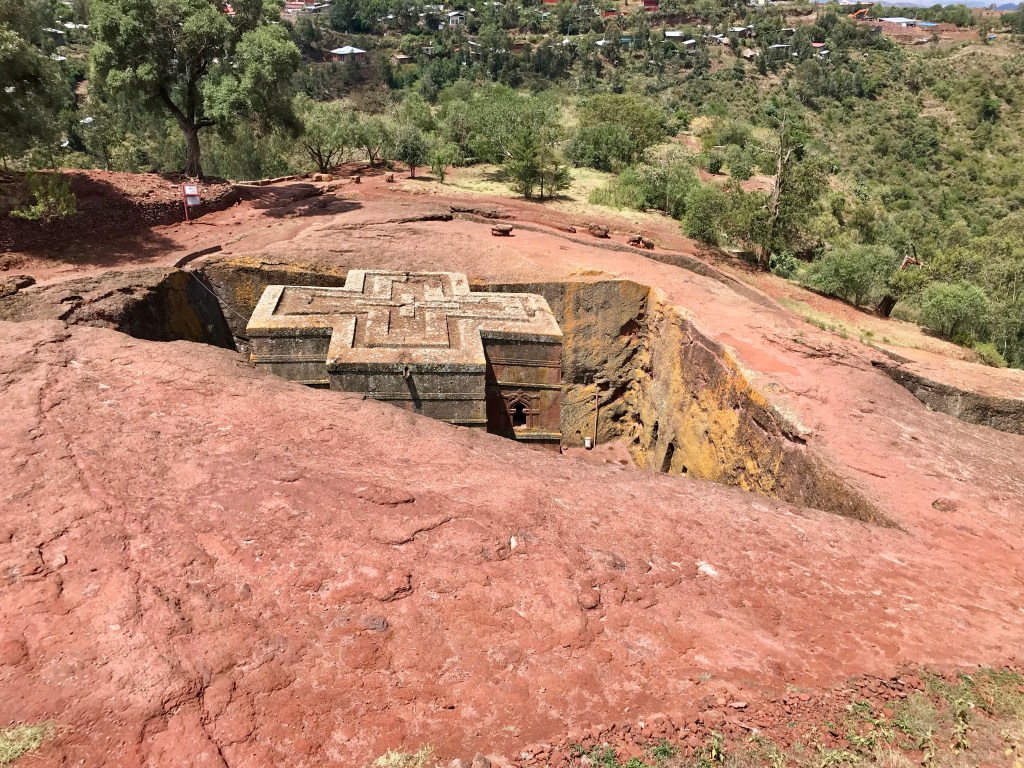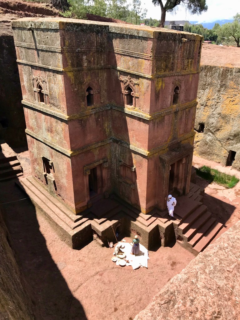 Most of the churches had only one way in and one way out and usually via a very steep narrow stairway. However one church we entered had a tunnel leading through to the next church approximately sixty metres long which was very narrow, had low head room and after the first couple of metres was completely dark and black. When transitioning through the tunnel no light is allowed as a demonstration of the difference between hell and heaven. This was an accurate demonstration because it was what you could imagine entering heaven would be like as you ascended into the second churches light. We then visited the famous St George’s church which when viewed from ground level you could see the St George cross carved into the roof of the church and is probably the most photographed church of all of them.